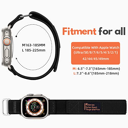 Dado - سوار من القماش والنايلون متوافق مع ساعة ابل ووتش 8 الترا | | 7 | 6 | 5 | 4 | 3 | اس اي 49 ملم 45 44 42 للرجال أساور مصممة بحلقات منسوجة لسلسلة