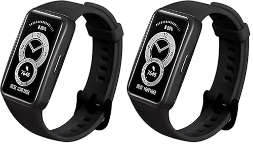 Dado - دادو سوار سيليكون بديل متوافق مع ساعة هواوي باند 6، اساور بلون سادة (اسود) (عبوة من قطعتين)