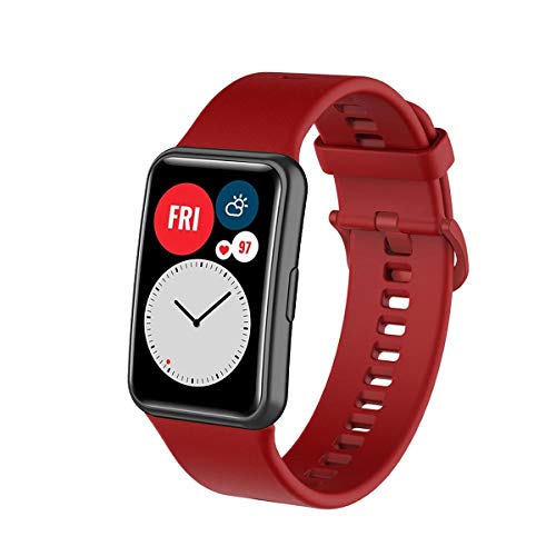 Dado - سوار ساعة سيليكون من دادو بديل متوافق مع هواوي فيت ووتش بالوان سادة احمر كريز للرجال.