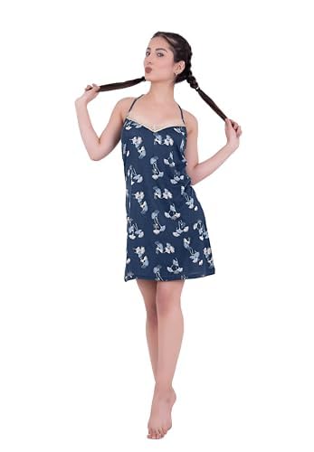 Generic - قميص نوم قصير بحمالات رفيعة - فستان صيفي متوسط الطول للنساء - لانجري قميص نوم من دعدوش