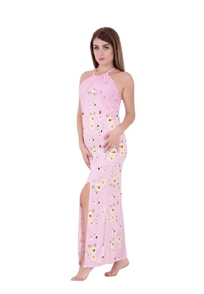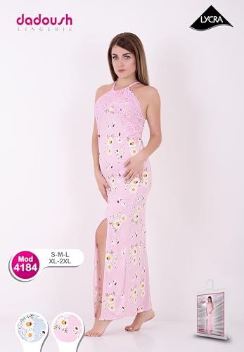 Dadoush - قميص نوم للنساء مع طباعة أمامية من دعدوش ، فستان نسائي بتطريز دانتيل ، ملابس نوم مريحة بدون اكمام ، قماش صيفي ناعم خفيف الوزن، مثالي للارتداء في المنزل والنوم