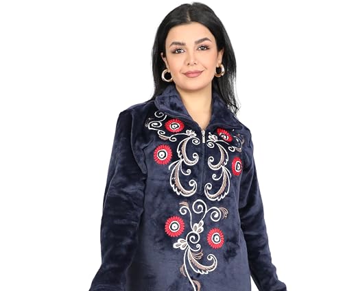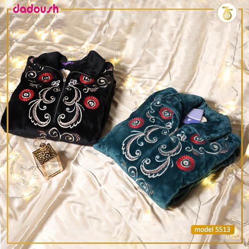 Dadoush - ثوب نوم شتوي مصنوع من قطن قطيفة بتطريز رائع،عباءة شتوية طويلة للنساء مصنوع من خامة قطيفة ومزينة بتطريز من دعدوش - قميص نوم شتوي مميز