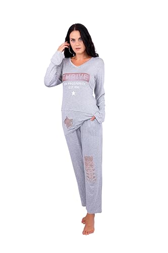 Dadoush - طقم بيجامة حريمي قطعتين بقصة مميزة وطول مثالي ، بيجاما للنساء من دعدوش بنطال كامل وبلوزة بأكمام طويلة نمط سادة بألوان منعشة لمزيد من الراحة والجمال . (رمادي, XL)