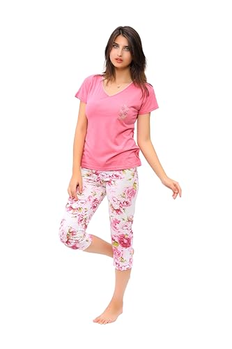 Shower - بيجاما صيفي حريمي قطعتين - طثم بيجاما تيشرت وبنطلون قصير من دعدوش (مخللي غامق, XL)