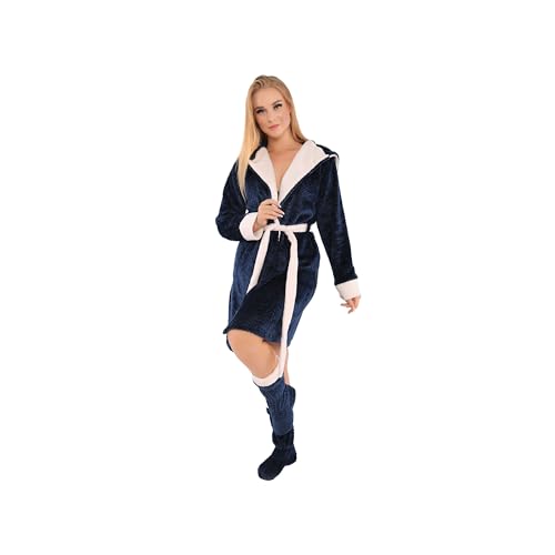 Dadoush - روب استحمام نسائي مع حزام، قطيفة ناعمة، مع قلنسوة وجوارب مطابقة، ثوب حريمي شتوي مع الشين , كمينو شتوي لطيف للنساء من دعدوش .