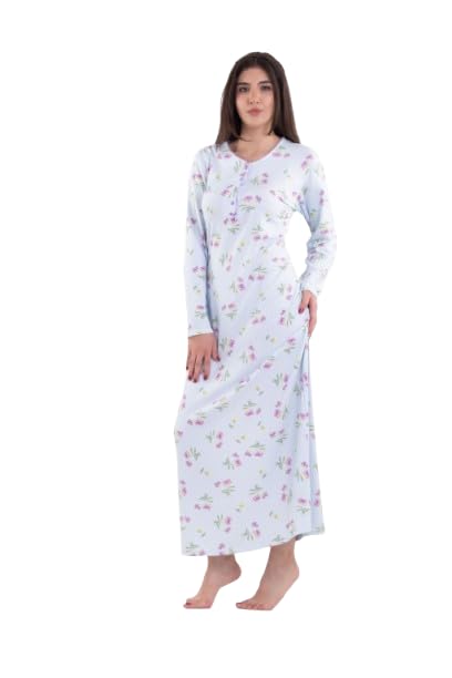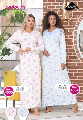 Dadoush - قميص نوم حريمي ماكسي عالي الجودة من دعدوش ناعم و مريح بأكمام طويلة ,ثوب بيتي شتوي طبعة الورود الانيقة والياقة المدورة تضيفان اليه لمسة من الاناقة.