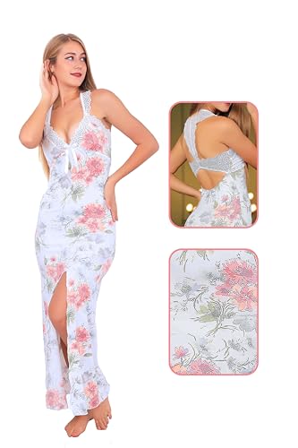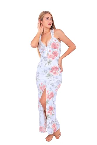 Generic - قميص نوم لانجري طويل مع فتحة جانبية حريمي من دعدوش , قميص نوم بقبة على شكل الحرفV (سماوي, 2XL)