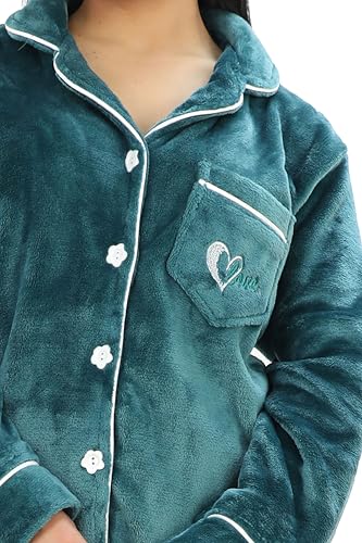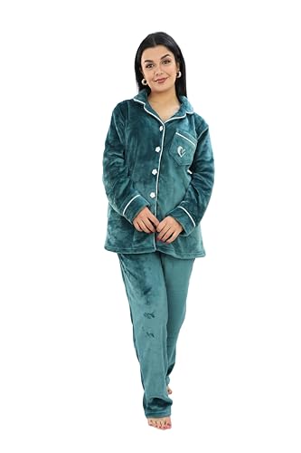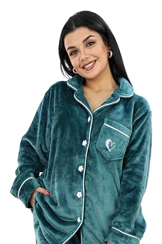 Dadoush - طقم بيجامة نسائية فاخرة من الفرو، مع أزرار أمامية وتصميم كلاسيكي - بيجامة نوم نسائية مريحة، بيجامة حريمي شتوي بزراير واكمام طويلة من دعدوش