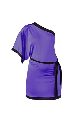 Dadoush - قميص نوم حريمي للعروسة كتف مائل من دعدوش - لانجري قميص نوم برباط خصر (باذنجاني, M)