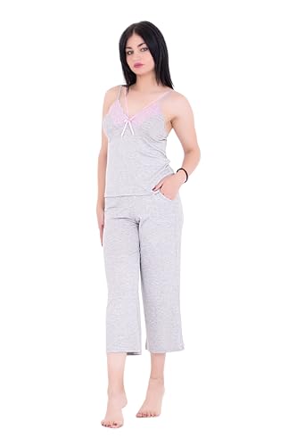 Dadoush - بيجامة حريمي صيفية بحمالات رفيعة من دعدوش - بيجاما بنتكورنسائية قطعتين (سكري, S)