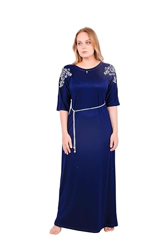 Generic - قميص نوم صيفي طويل للنساء كم قصير من دعدوش , ثوب نوم حريمي مريح بتفاصيل أنيقة مثل التطريز على الاكتاف لمزيد من الأناقة