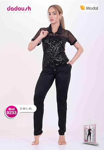 Shower - طقم بيجامة حريمي صيفي مكون من قطعتين بنطلون وتيشرت طقم بيجامة أنيق مصنوع من أجود واعلي الخامات الممتازه - بيجامة صيفية نصف كم للنساء مع تطريزعلى الصدر من دعدوش