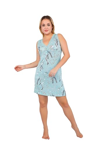 Generic - ثوب نوم حريمي صيفي قصيرمن دعدوش ,قميص نوم حريمي صيفي بدون اكمام مزين بالزهور الرائعة لمزيد من الاناقة والجمال