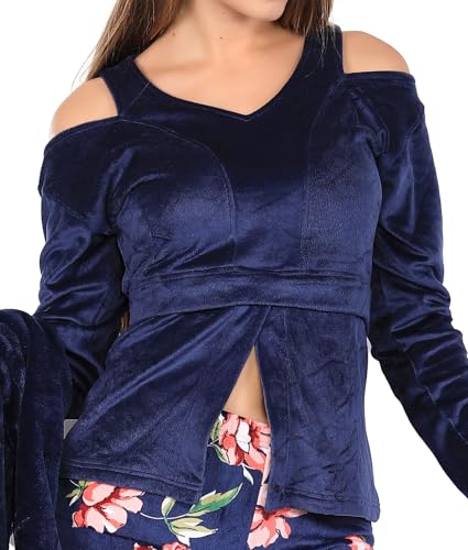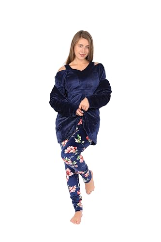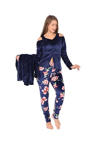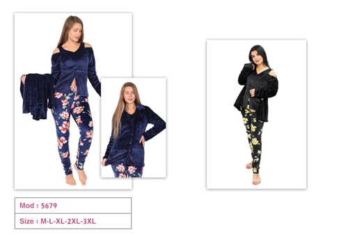 Dadoush - طقم بيجامة نسائي من 3 قطع من القطيفة - بيجامة شتوية للنساء من دعدوش - ملابس نوم ناعمة ودافئة من ثلاث قطع من البيجامات المخملية، بيجامه شتوية حريمي للمنزل