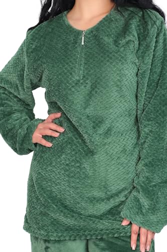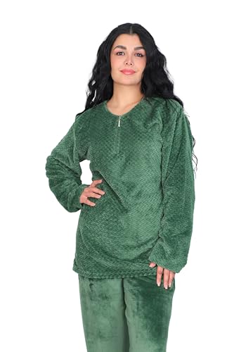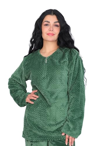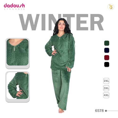 Dadoush - بيجاما نسائية من الفراء الناعم ، مقاس كبير ، قطعتين مع سحاب، و أكمام طويلة، للنوم والاسترخاء. بجامة حريمي شتوية من دعدوش