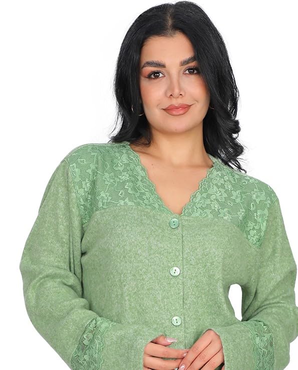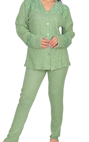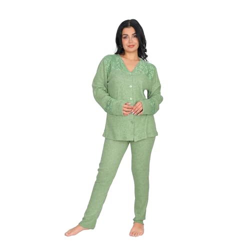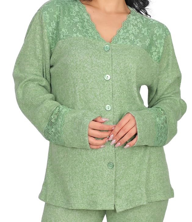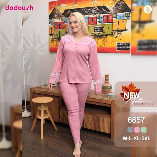 Dadoush - طقم بيجامة نسائي شتوي من القطن، متعدد الألوان مزين بالدانتيل، مريح للنوم- بيجامه حريمى شتوى - بيجامة قطنية بتصميم شتوي للنساء من دعدوش