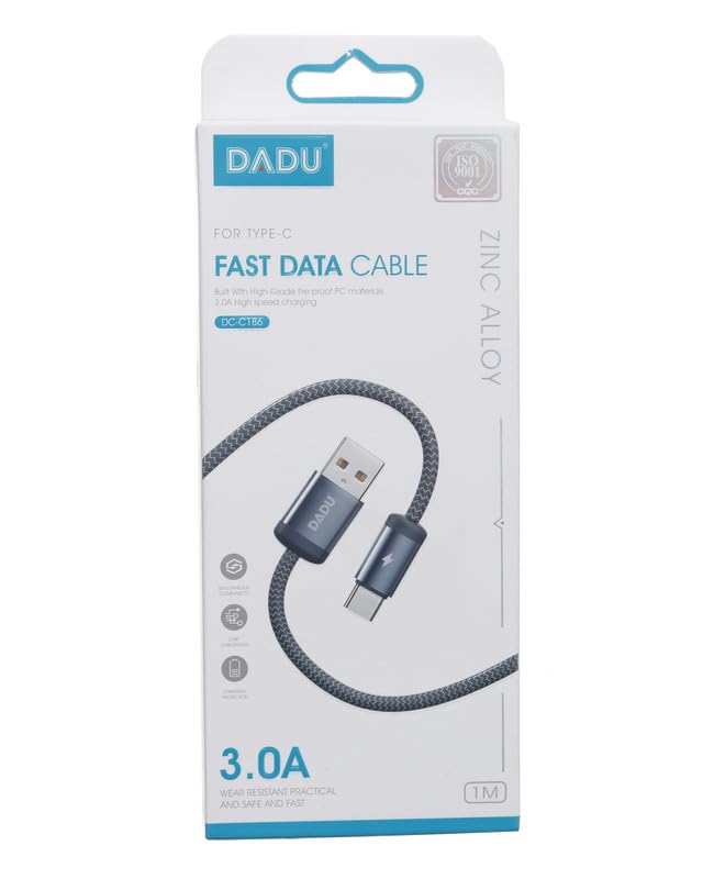 DADU - كابل بيانات سريع بمنفذ نوع C يدعم الشحن بقدرة 3.0 امبير وطول 1 متر من دادو، لون أسود، موديل DC-C186