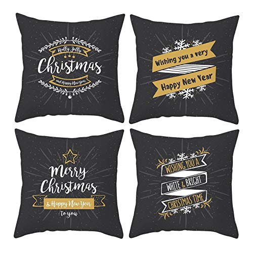 Daesar - أغطية وسائد Daesar للكريسماس، أغطية وسائد 4 عبوات أكياس وسائد رمادية داكنة بنمط نجوم عيد الميلاد المجيد 40.64 × 40.64 سم من البوليستر