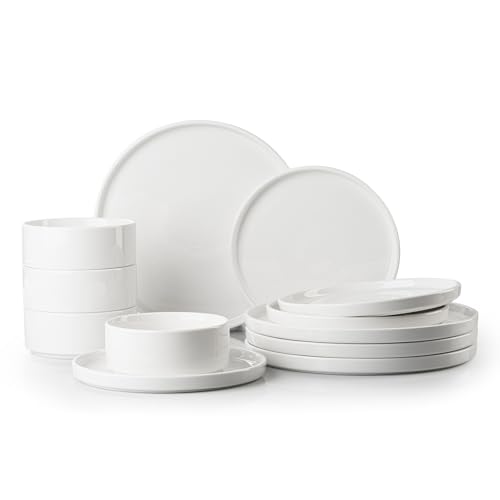 Dafuceramic - طقم أطباق وبولات من 12 قطعة، طقم أطباق بيضاء لـ 4 أشخاص، طقم أدوات مائدة وتجهيزات مطبخ مقاومة للكسر والخدوش من دافوسيراميك