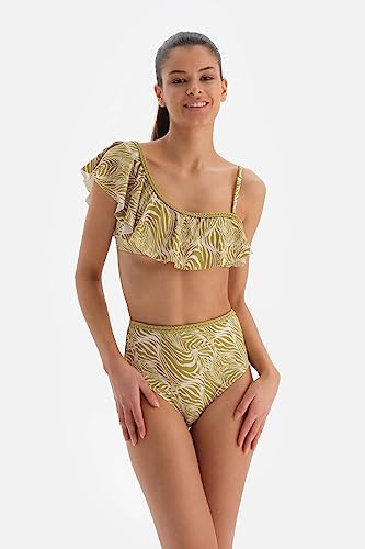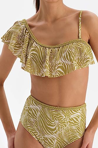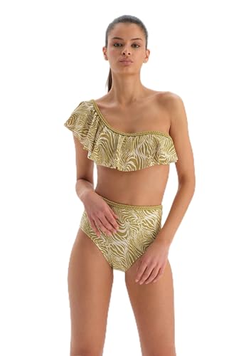 Dagi - بلوزة مثلثة بكتف واحد للنساء من داجي، كوب كامل، حزام قابل للازالة، نمط حيوان، غير سلك، فستقي