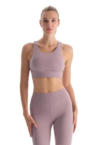 Dagi - حمالة صدر رياضية للنساء من داجي، بطانة قابلة للازالة، حزام متقاطع، رقبة على شكل حرف U، انترلوك، روز داستي