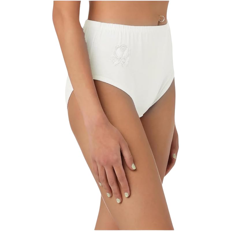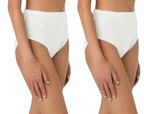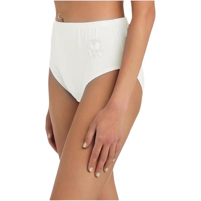 Dahab - دهب طقم بانتي مرتفع الخصر باستك مطرز بالزهور للنساء من قطعتين، لون ابيض، مقاس 4XL