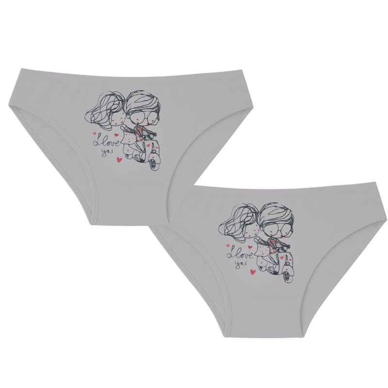 Dahab - دهب طقم بانتي مرتفع الخصر مطبوع باشكال للنساء من قطعتين، لون رمادي، مقاس XL