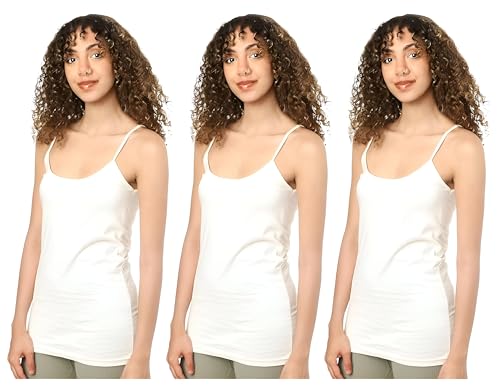 Dahab - فانلة قطن سادة برقبة دائرية وحمالات رفيعة للنساء من دهب، طقم من 3 قطع، لون بيج، مقاس M