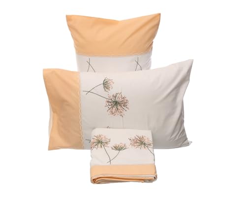 Dahab Luxury Home - طقم ملاءة سرير كريمكو بتصميم مزخرف بالذهب والكريستال مع خاصية العلاج بالروائح العطرية من دهب لاكشري هوم، 5 قطع، اوف وايت وبرتقالي