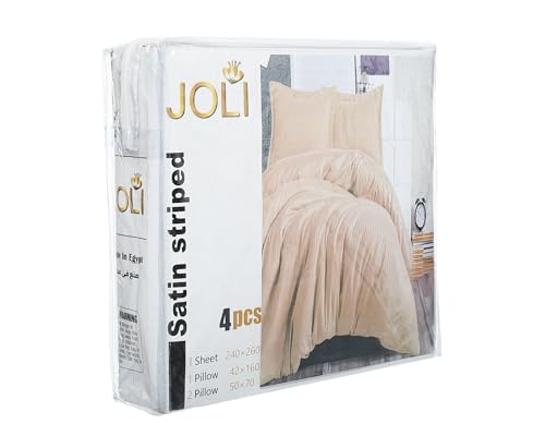 Dahab Luxury Home - ملاءة وكيس مخدة جوليا بتصميم مخطط طقم من دهب لاكشيري هوم، 4 قطع، مقاس 2.4 م × 2.6 م، لون كافيه