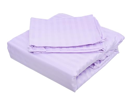 Dahab Luxury Home - طقم ملاءة سرير بأستك مخططة جولي وأكياس مخدات من دهب لاكجري هوم، 3 قطع، 2 متر × 1.80 متر، موف