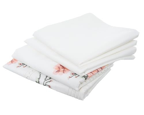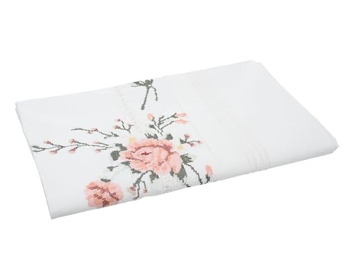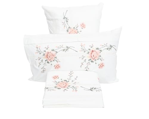 Dahab Luxury Home - طقم ملاءة سرير كريمكو مطرز بنمط ايتامين مع ملاءة وأكياس مخدات مكون من 5 قطع دهب لاكجري هوم، اوف وايت