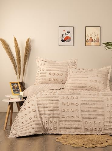 Dahab Luxury Home - كوفرتة سرير من المايكروفايبر بتصميم بوهو ومزخرفة بأنماط كابتونية ذهبية ومعها كيسي مخدة من دهب لاكشري هوم، طقم بلون بيج