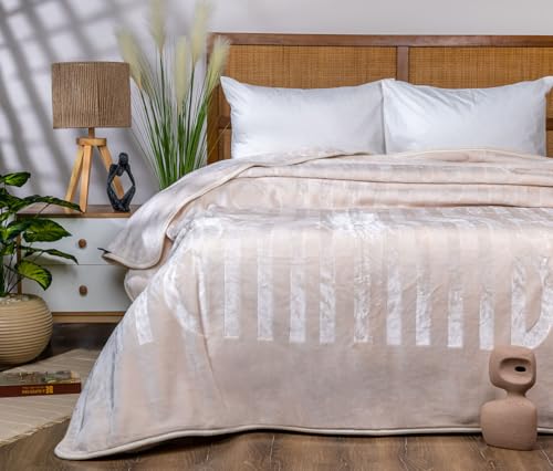 Dahab Luxury Home - بطانية قطيفة للمنزل من دهب، لون اوف وايت، مقاس 2.2 م × 2.4 م