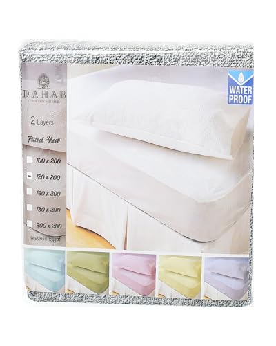 Dahab Luxury Home - ملاءة سرير مقاومة للماء مطرزة بشريط من دهب لاكجري هوم، لون رمادي/ أبيض، مقاس 1.20 × 2.00 متر