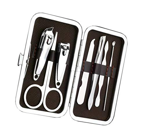 Nutrascience - مجموعة قصافة اظافر احترافية من الستانلس ستيل مكونة من 7 قطع، قصافة اظافر وملعقة اذن وملاقط ومقص حواجب من داهي (ابيض فضي)