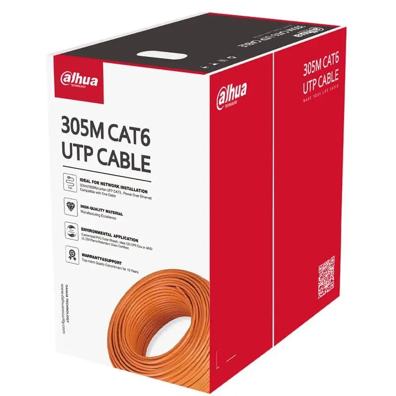 Generic - كابل شبكة من داهو PFM922I-6UN-C UTP CAT6 بطول 305 متر – لون برتقالي – نحاس عالي الجودة – يدعم PoE – مناسب لكاميرات المراقبة CCTV والإنترنت والشبكات