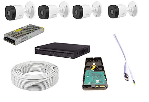 DAHUA - مجموعة كاميرات FHD بدقة 2 ميجابكسل و4 قنوات ومسجل فيديو رقمي HD و4 كاميرات رصاصة وقرص صلب سعة 1 تيرابايت + لفة سلك + إمدادات وجميع الموصلات المطلوبة من داهوا