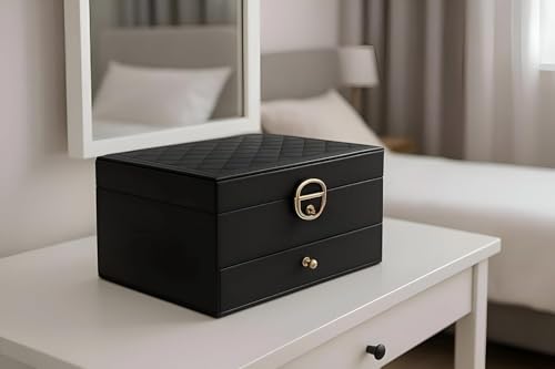 - أناقة فاخرة تدخل البهجة لديكور غرفتك لم يعد تنظيم المجوهرات مهمة مخفية خلف الأبواب المغلقة. مع هذا المنظم المصنوع من الجلد الفاخر، يمكنك الآن عرض إكسسواراتك كقطعة فنية على طاولة الزينة أو منضدة غرفة النوم. تصميمه الأنيق وعصريته يضيفان لمسة جمالية راقية لديكور منزلك. إنه ليس مجرد صندوق تخزين، بل هو إكسسوار منزلي بحد ذاته يعكس ذوقك الرفيع وحبك للتفاصيل الجميلة، مما يضفي شعورًا بالفخامة والرقي كلما نظرت إليه.