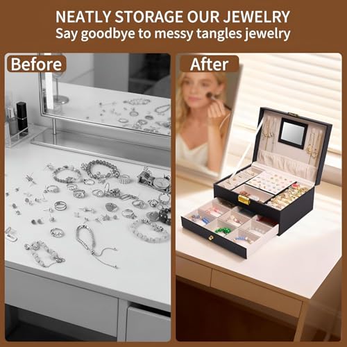 - حل مثالي لمشكلة التشابك والضياع تخلصي نهائيًا من مشكلة السلاسل المتشابكة والأقراط المفقودة التي تفسد يومك وتضيع وقتك. هذا المنظم مصمم بفواصل ذكية ومقسمات داخلية تحافظ على كل قطعة في مكانها المستقل. ستلاحظين الفرق من أول استخدام، حيث ستجدين قلادتك المفضلة جاهزة دون عناء فك العقد، وخواتمك منظمة دون خدش بعضها. وفرنا لك وقتك وجهدك لنعطيك المزيد من الدقائق للاستمتاع بيومك بدلاً من إضاعتها في ترتيب الفوضي