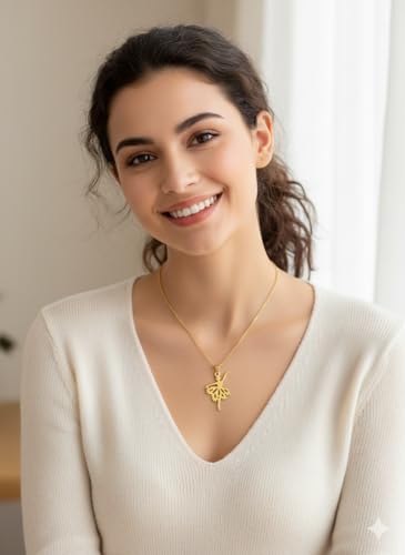 Generic - سلسلة راقصة الباليه الانيقة والنادرة - تصميم أنثوي ناعم ومفرغ - عقد فني من الستانلس ستيل المقاوم للصدأ والبهتان - هدية مثالية لعاشقات الرقص