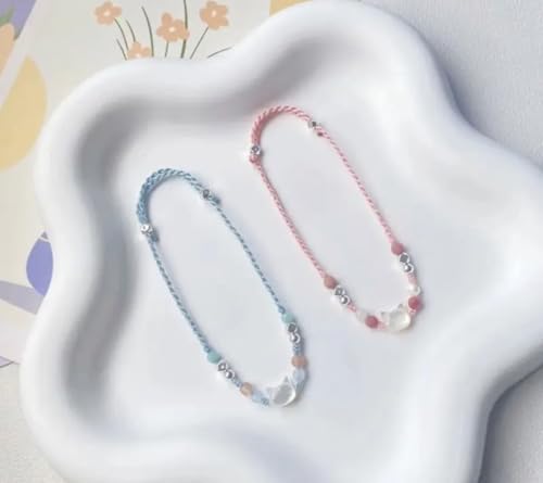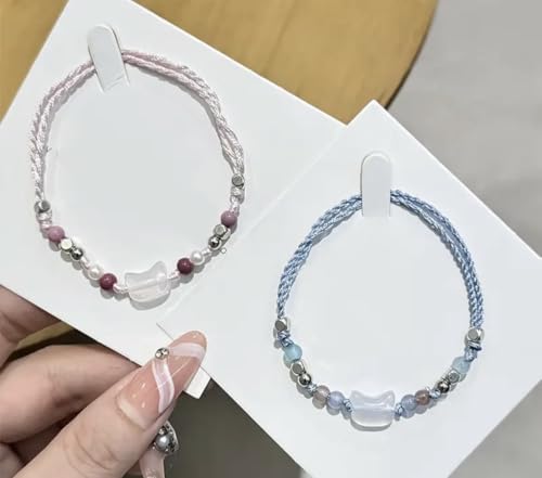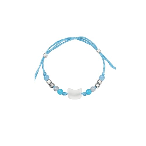 Generic - سوار انيق مزين بالخرز، سلسلة ثعبان من الستانلس ستيل بتصميم عقدة، معادن مختلطة، بينك وازرق، طول 16 سم، نمط عصري، للبالغين من الجنسين