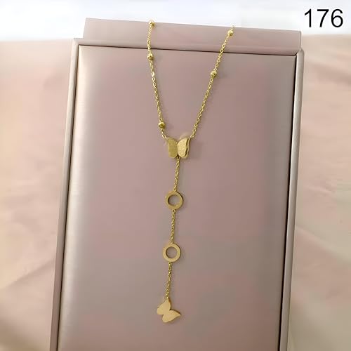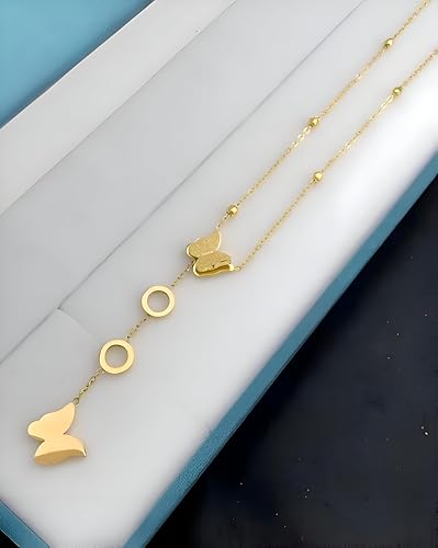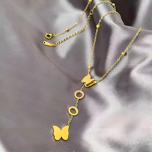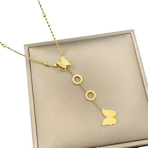 Generic - قلادة سلسلة أنيقة - دلاية فراشة رشيقة مزينة بزخارف دائرية، مصنوعة بتصميم حلقات سلسلة رفيعة مناسبة للارتداء مع قلائد أخرى أو بمفردها كقطعة مميزة