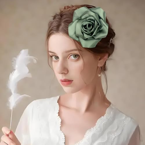 Hebelee - دبابيس شعر انيقة على شكل زهرة للنساء، دبابيس شعر من قماش الاورجانزا بتصميم زهور خفيفة الوزن، اكسسوارات شعر لحفلات الزفاف والحفلات الراقصة والكنيسة (كحلي)