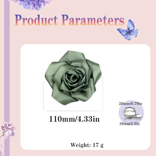 - المقاس والتصميم: 11 سم/4.33 بوصة. مشابك شعر مصنوعة يدويًا من الأورجانزا على شكل زهور، مثالية للمناسبات الرسمية