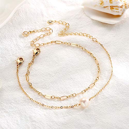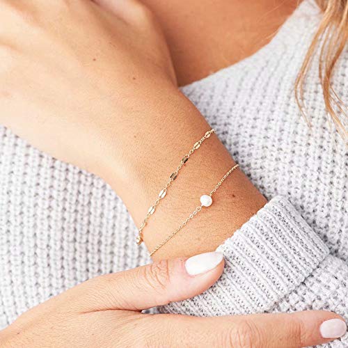 generic - اساور ذهبية انيقة للنساء، محشوة بالذهب عيار 14 قيراط، سوار قابل للتعديل بطبقات لطيفة على شكل عين الحسد وسلسلة بيضاوية وقضيب لؤلؤي، اساور ذهبية على شكل سلحفاة للنساء
