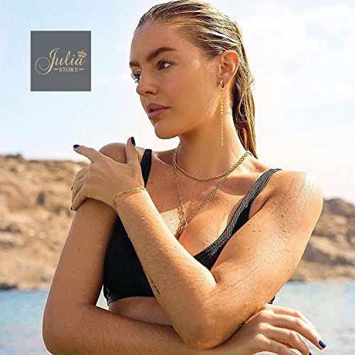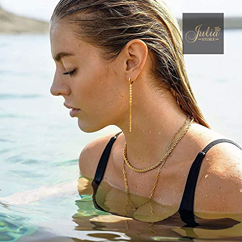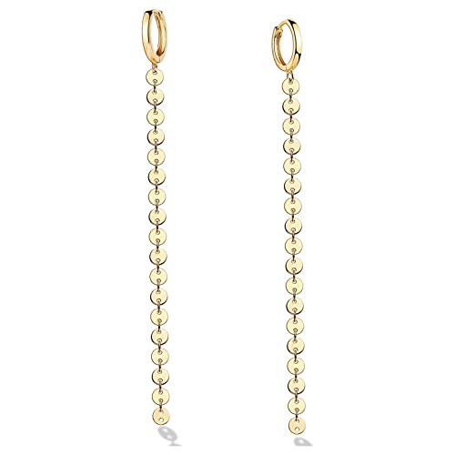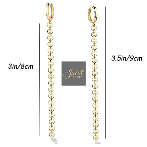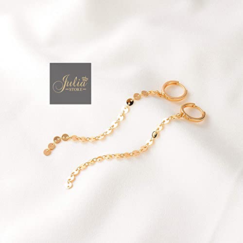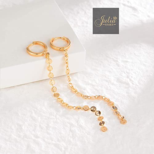 Generic - حلقان حلقية بسلسلة انيقة من جوليا ستور متدلية طويلة مطلية بالذهب عيار 18K على شكل عملة معدنية يتدلى منها سلسلة حلقات للاذنين للنساء Large نحاس اصفر بدون أحجار كريمة