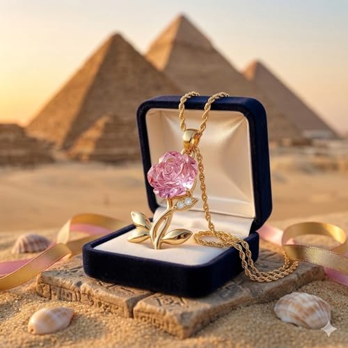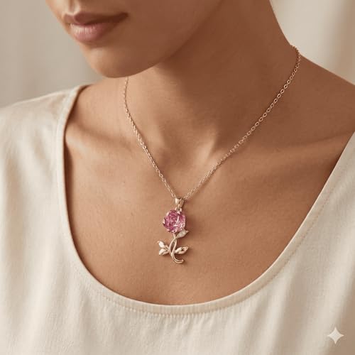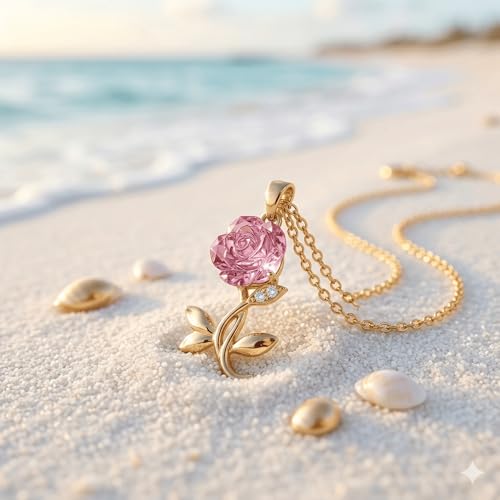 Generic - سلسلة "الوردة البينك" الانيقة | ستانلس ستيل ذهبي بتصميم مجسم ومرصعة بالكريستال | سلسلة زهرة الجوري الرومانسية المقاومة للصدأ | أرقى هدية للنساء في عيد الحب والمناسبات