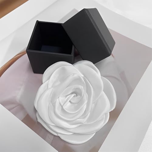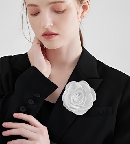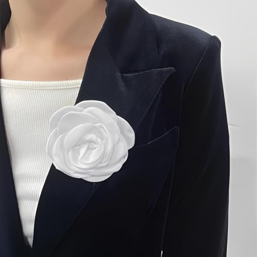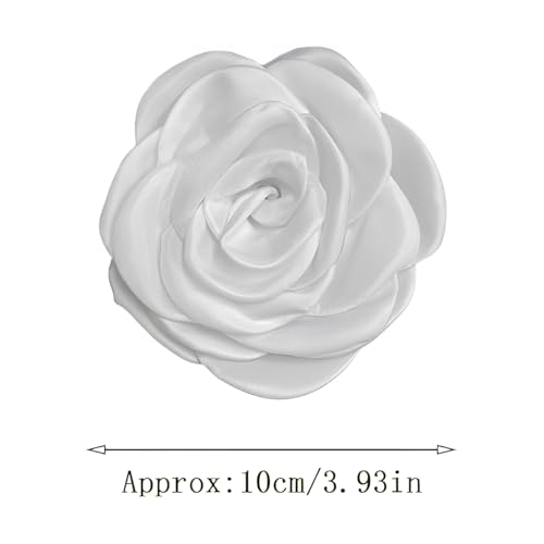 IMINI - بروش انيق على شكل وردة من الساتان لحفلات الزفاف والمناسبات - دبوس زهور مصنوع يدويا 10 سم مع مشبك، اكسسوارات طية صدر مزدوجة الاغراض للنساء والرجال (صندوق هدايا)