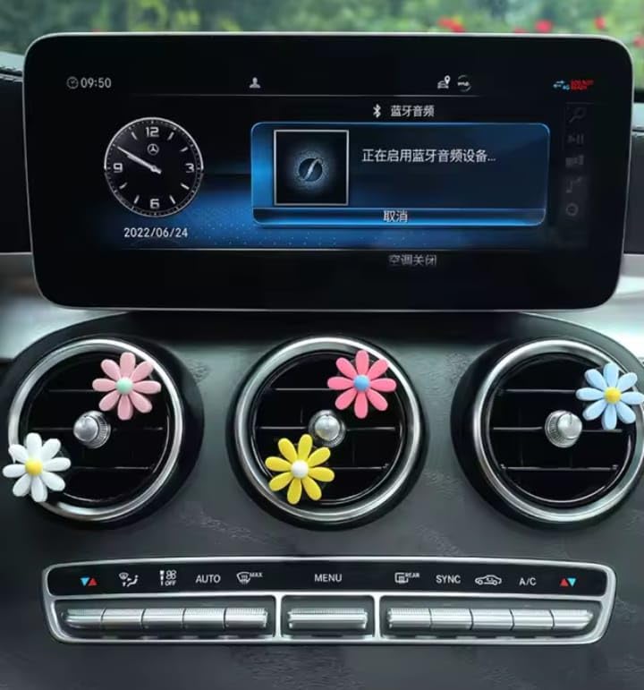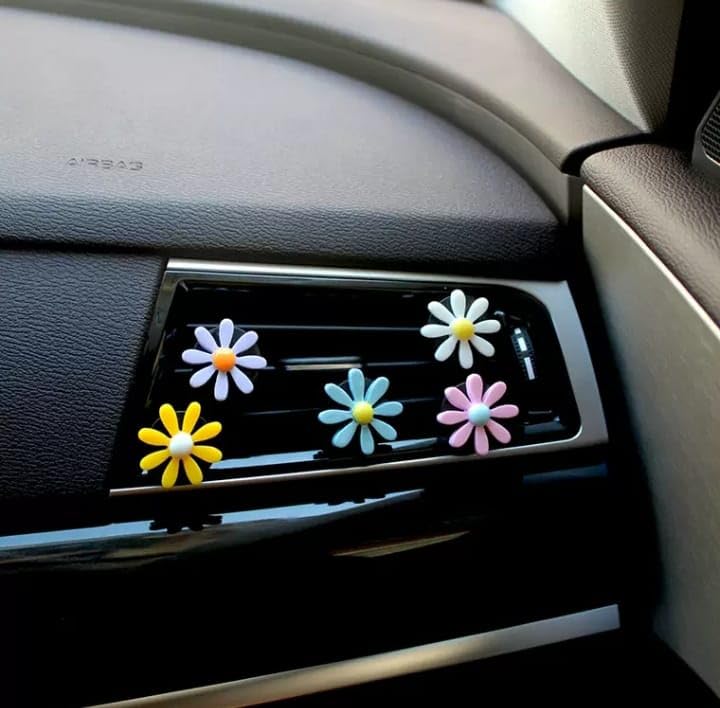 - تصميم مزخرف: مشابك فتحات تهوية السيارة الجميلة على شكل زهرة الأقحوان بألوان نابضة بالحياة بما في ذلك الوردي والأبيض والأصفر والأزرق تضيف لمسة زهرية ساحرة إلى الجزء الداخلي لسيارتك.